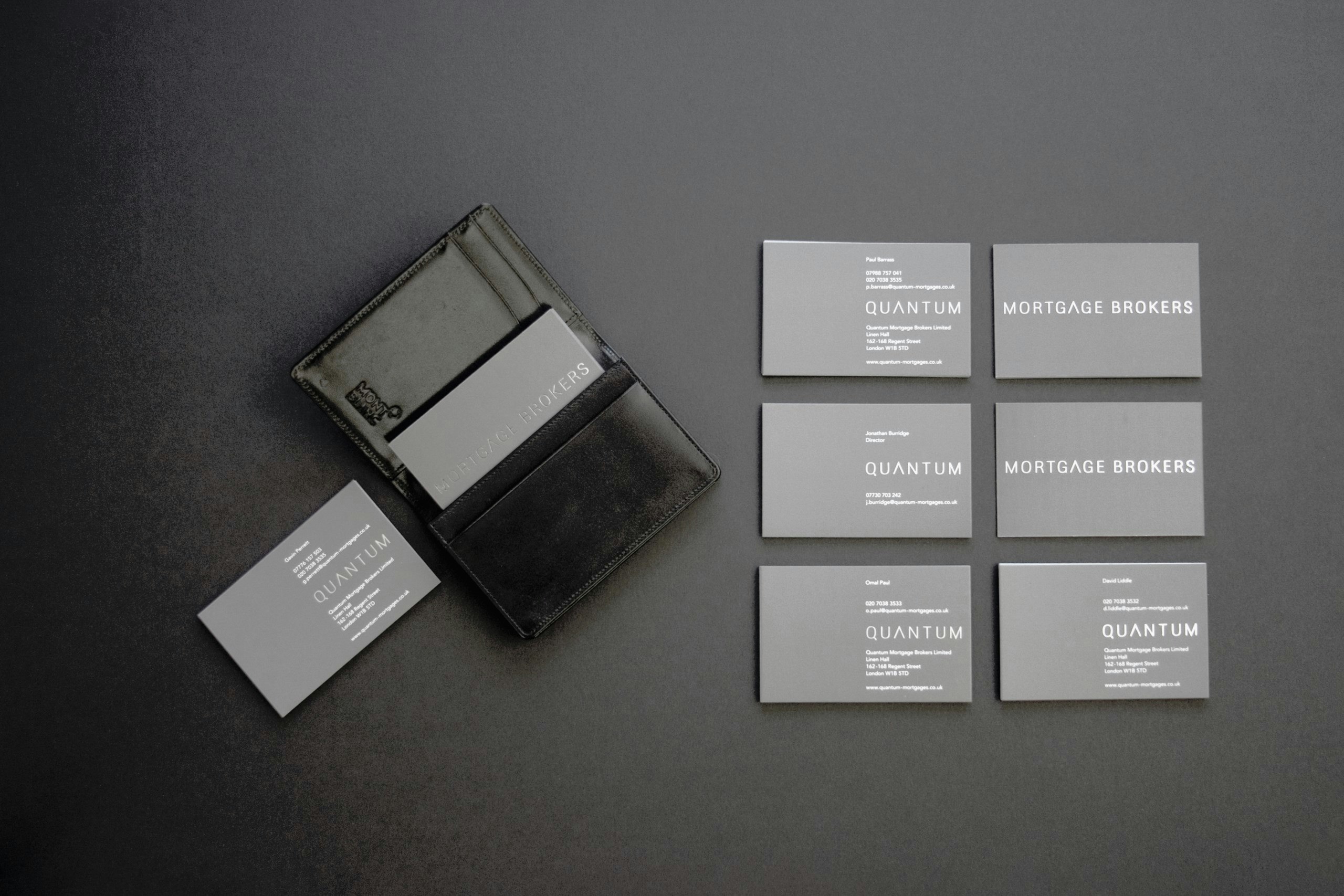 The Quantum brand comes with a handshake, not a phone call, so the business card became the most important, consistent advert the company could produce.