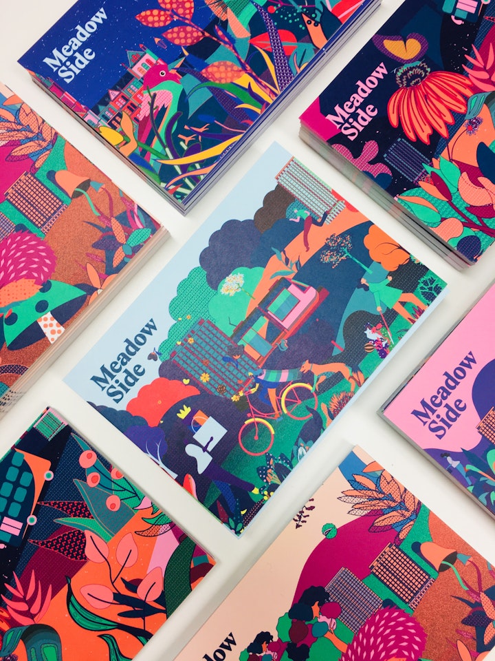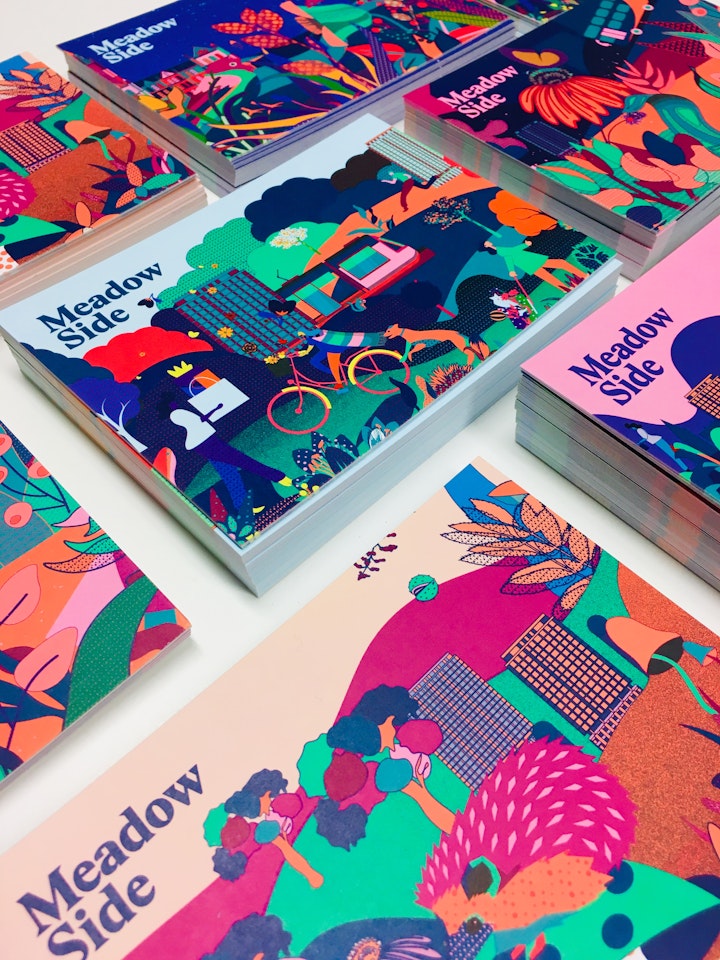 Meadow Side is a collection of four distinctive buildings that catch the eye of a different crowd surrounded by nature. Agency 90 Degrees Manchester asked me to do illustrations for the project. The illustrations focused on the buildings and the nature side of the project.